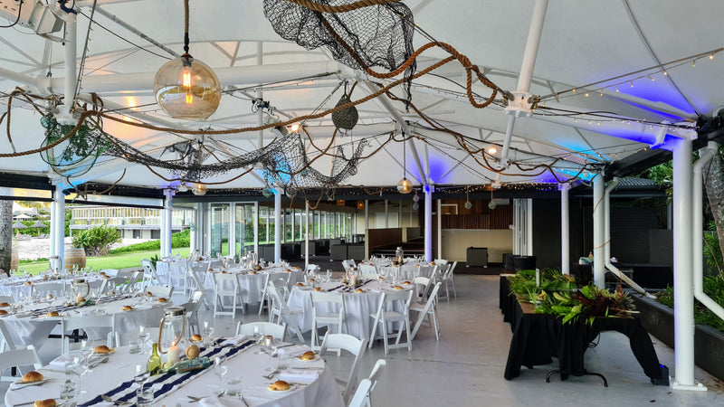 Festoon lighting creates a warm, ambient glow, while unique castaway-style centerpieces add character and charm to every table. The boardwalk-inspired entrance and our standout seafood boat display complete the scene, offering an experience that’s both unexpected and unforgettable. Ideal for corporate gatherings looking for a fresh, engaging twist, Castaway is all about letting go and enjoying the moment—no map required.