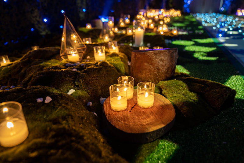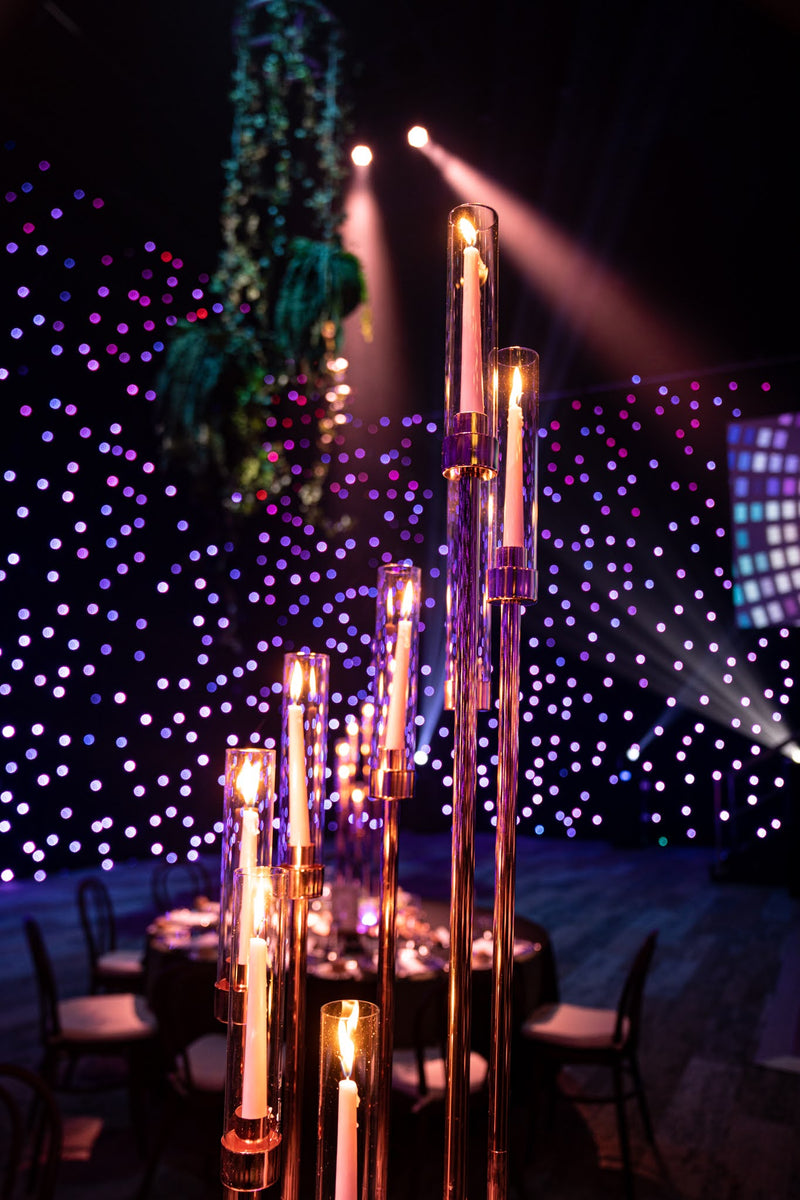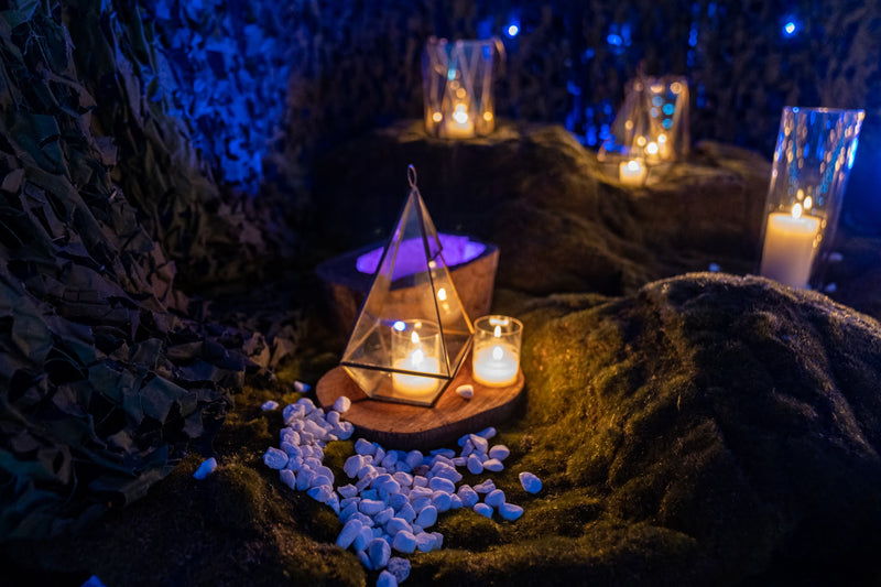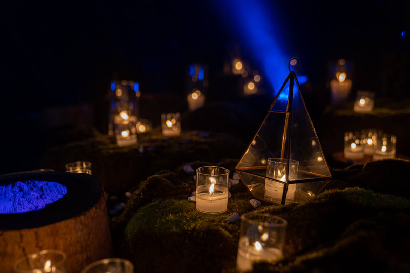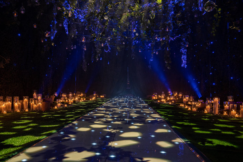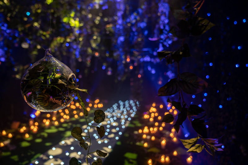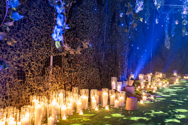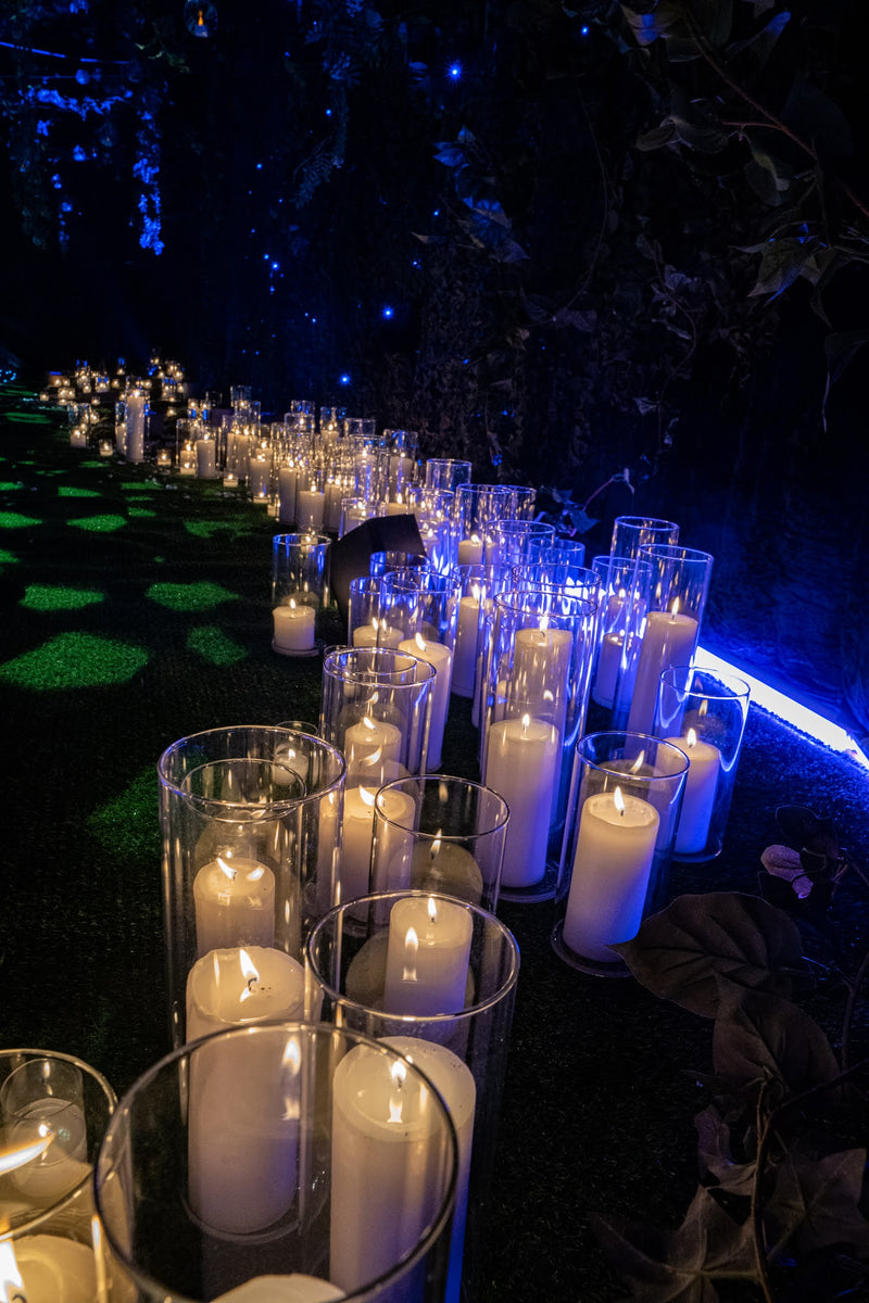 Guests will begin their journey through a dramatic entrance tunnel, softly lit with flickering candles and draped in cascading greenery, setting the tone for the extraordinary experience ahead. As they enter the main event space, they’ll be greeted by dark, moody walls that evoke the depths of an ancient forest, and beautifully styled tables adorned with forest-inspired details and natural textures.