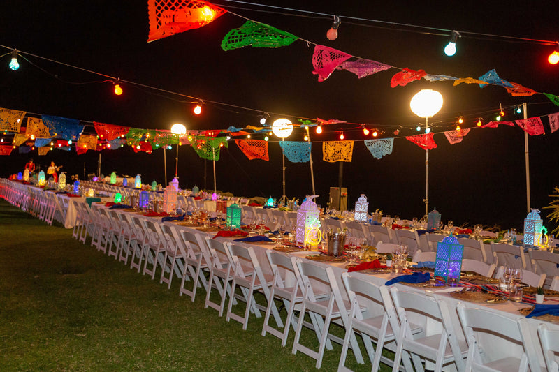 Bold, bright décor featuring papel picado banners, colourful linens, cactus arrangements, and authentic Mexican accents set the stage for a fun and immersive experience. Lively Latin music fills the air, encouraging guests to relax, mingle, and soak in the festive atmosphere. Optional live entertainment, such as mariachi bands, can enhance the experience and get everyone into the fiesta spirit.