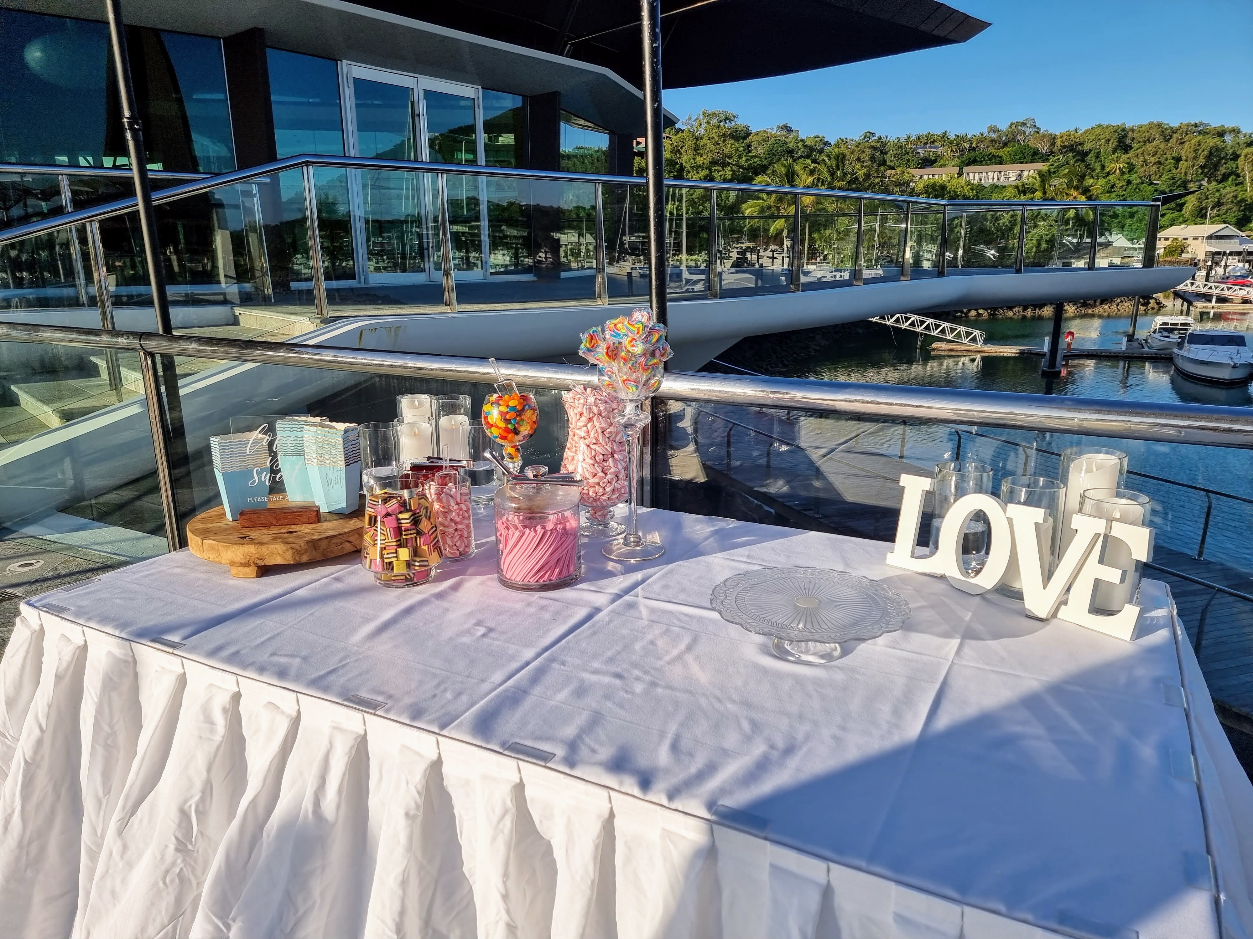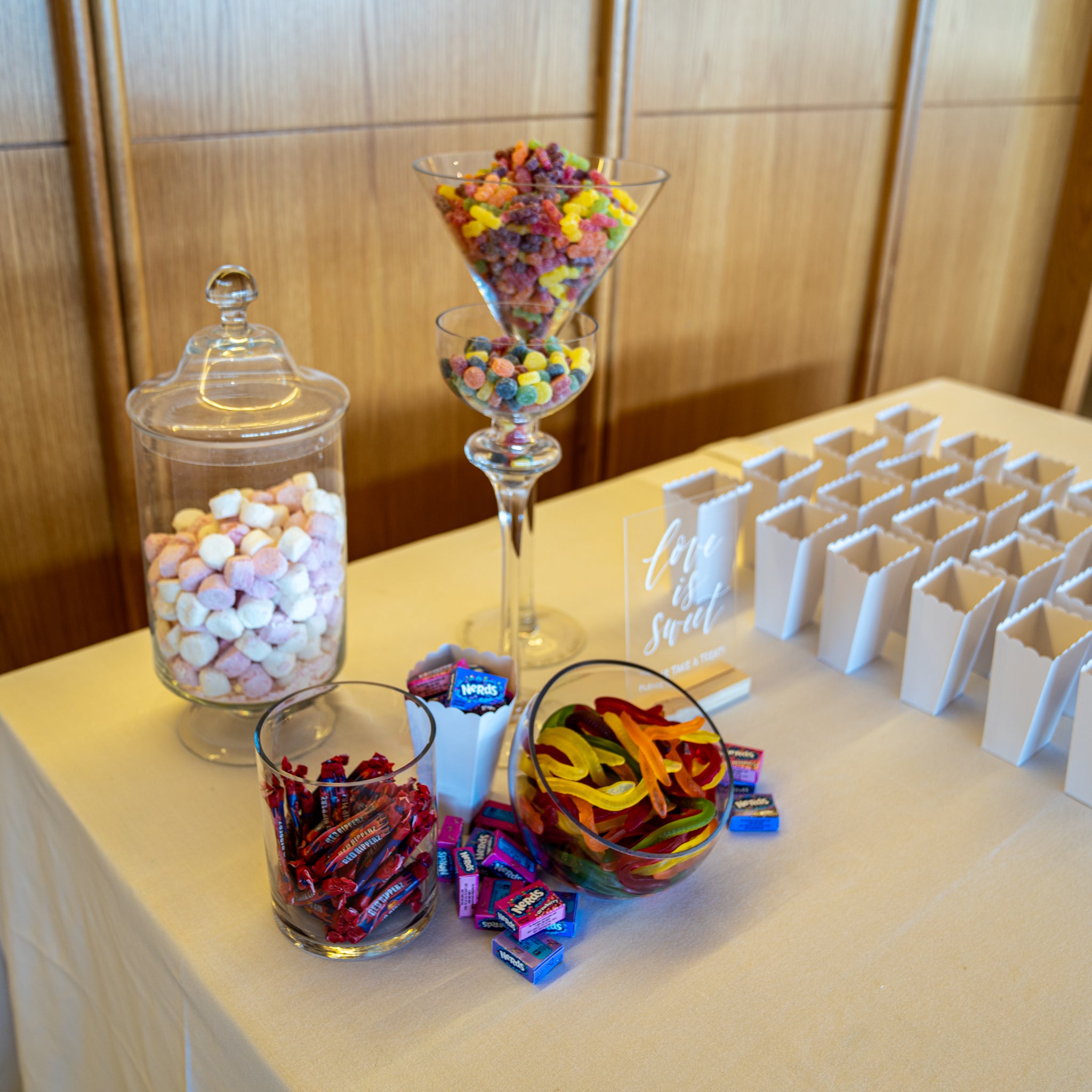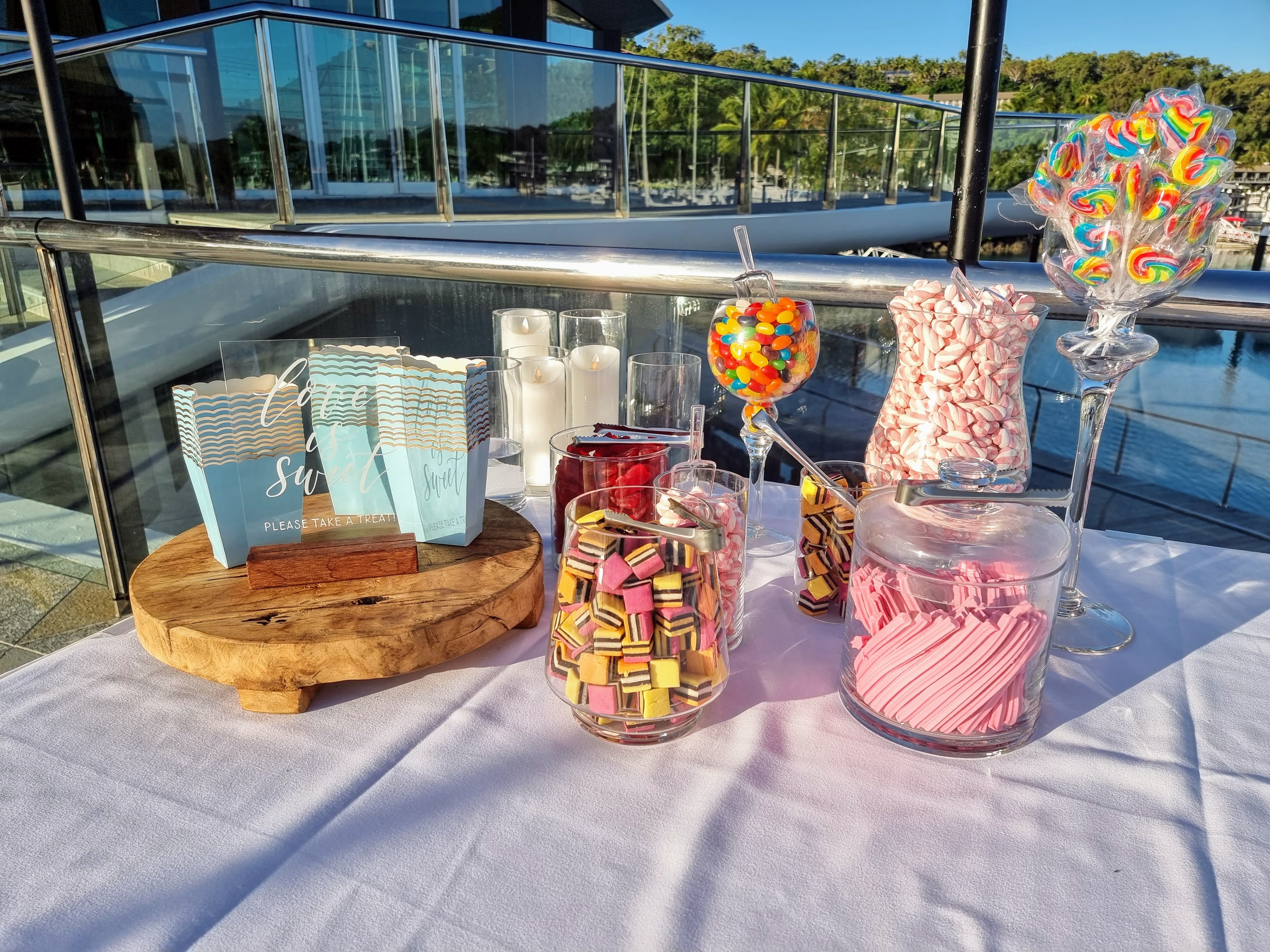 Keep your guests well fed with our candy bar set up. We supply a selection of various sized jars to suit your candy along with scoops. We have a light-up sign for custom wording and small wooden LOVE letters to finish off the look.