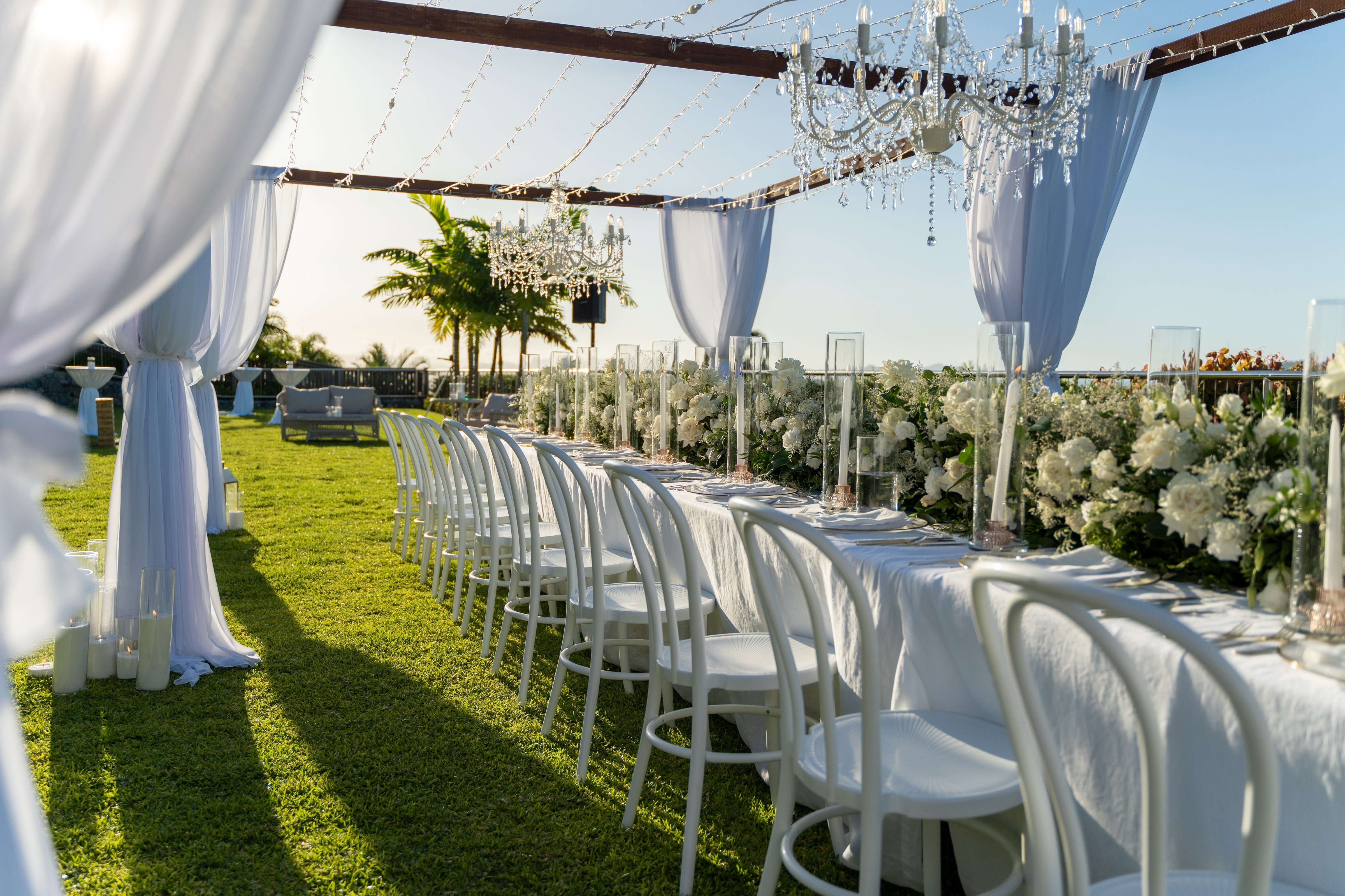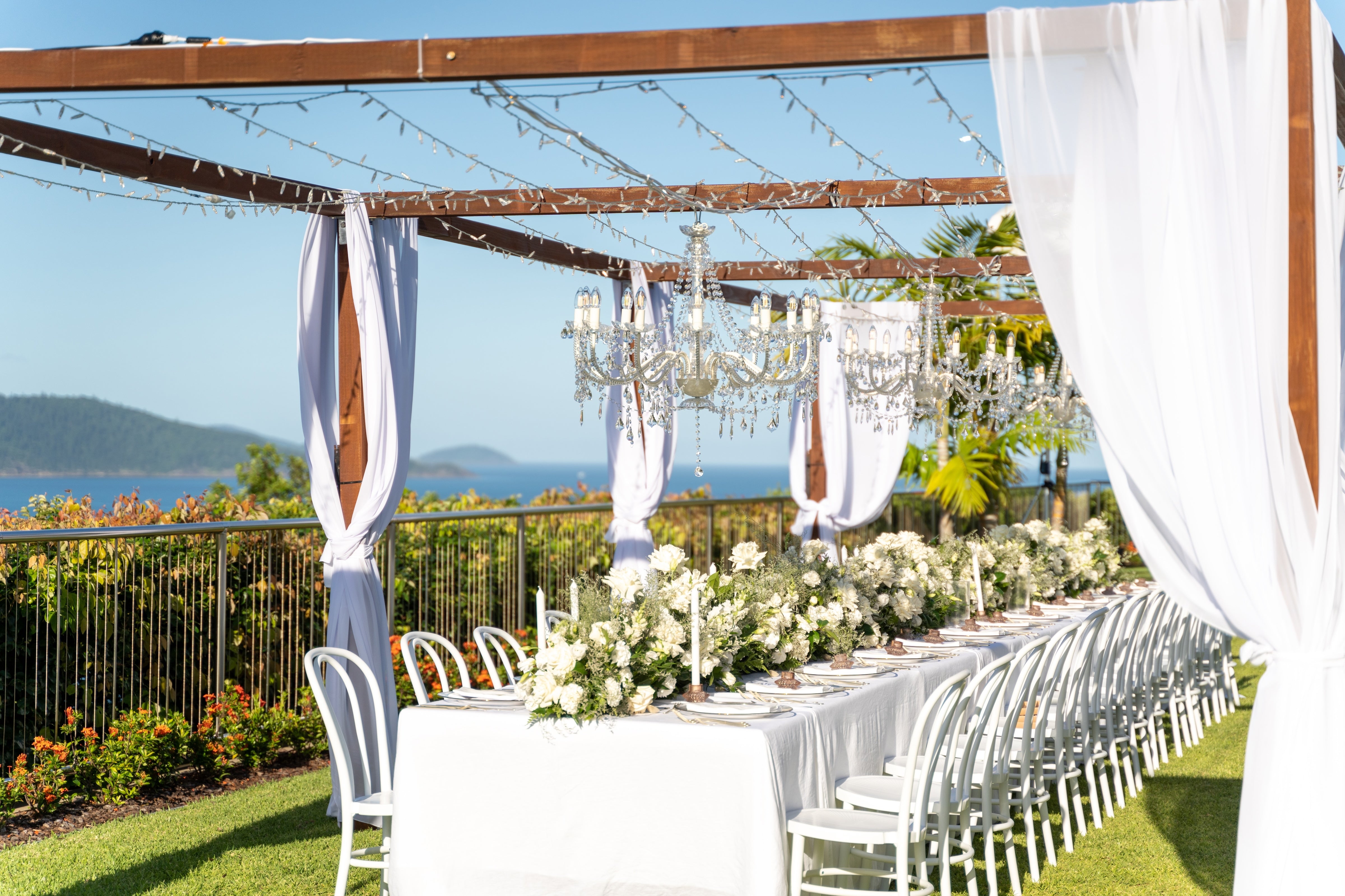 If you are having an intimate dinner or would like to make a WOW moment for your Top Table we highly recommend our Timber Canopy.  The Canopy is perfect to hang Fairy Lights, Festoon Lights, Chandeliers and Chiffon from!*